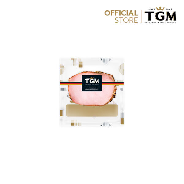 แฮมหมูลดขนาด มีมันติดที่ขอบเล็กน้อย รมควันจนผิวมีสีน้ำตาลอ่อน เนื้อด้านในมีสีชมพู เนื้อสัมผัสนุ่ม สไลซ์หนาสำหรับนำไปปรุงเป็นสเต็ก